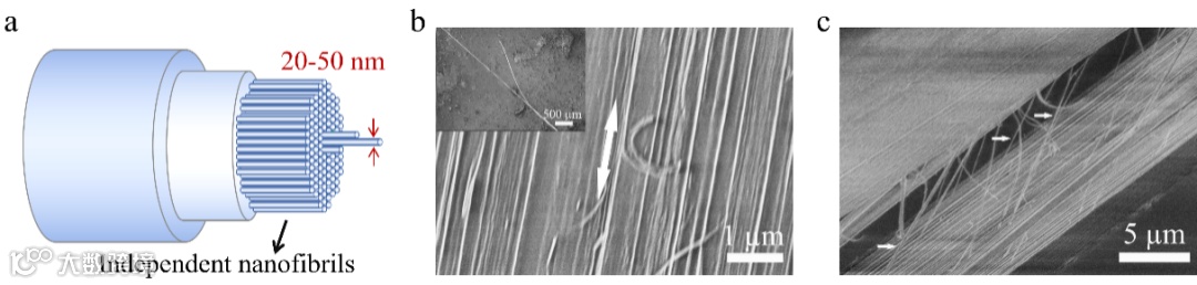 图1.柞蚕丝中高度取向、相对独立的纳米纤维结构