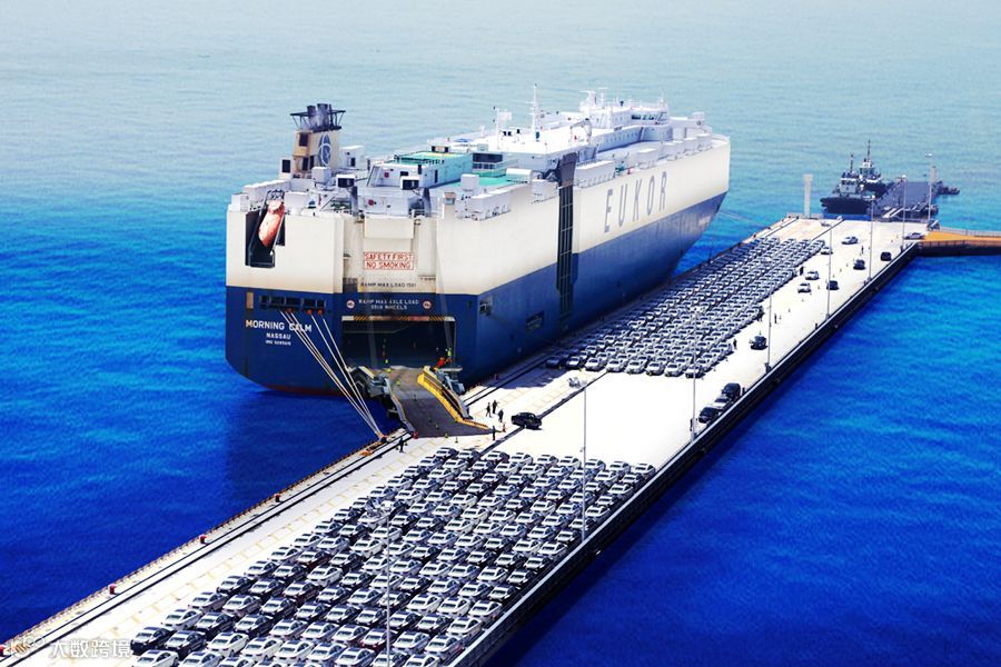 载车滚装船:专门用于装载各种汽车。(停靠在梅西滚装码头泊位的就是载车滚装船。)
