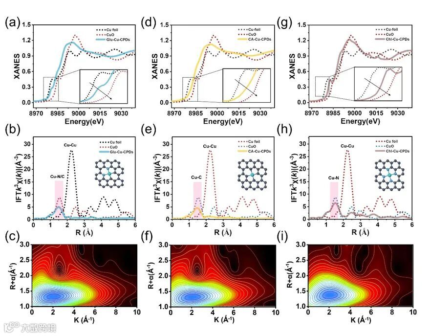 XANES表征揭示了这三种Cu掺杂CPDs中Cu原子的配位环境分别为Cu-