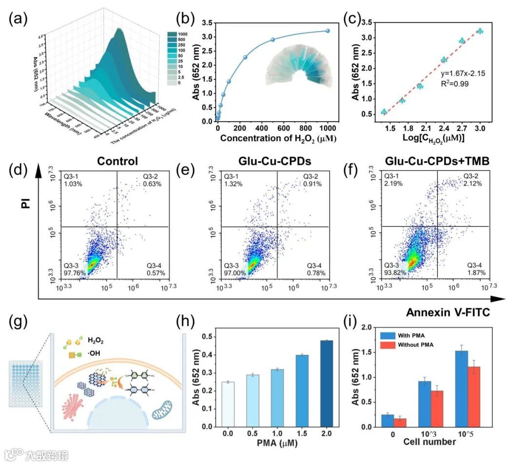 图4. Glu-Cu-CPDs在检测Hela细胞中过氧化氢的应用