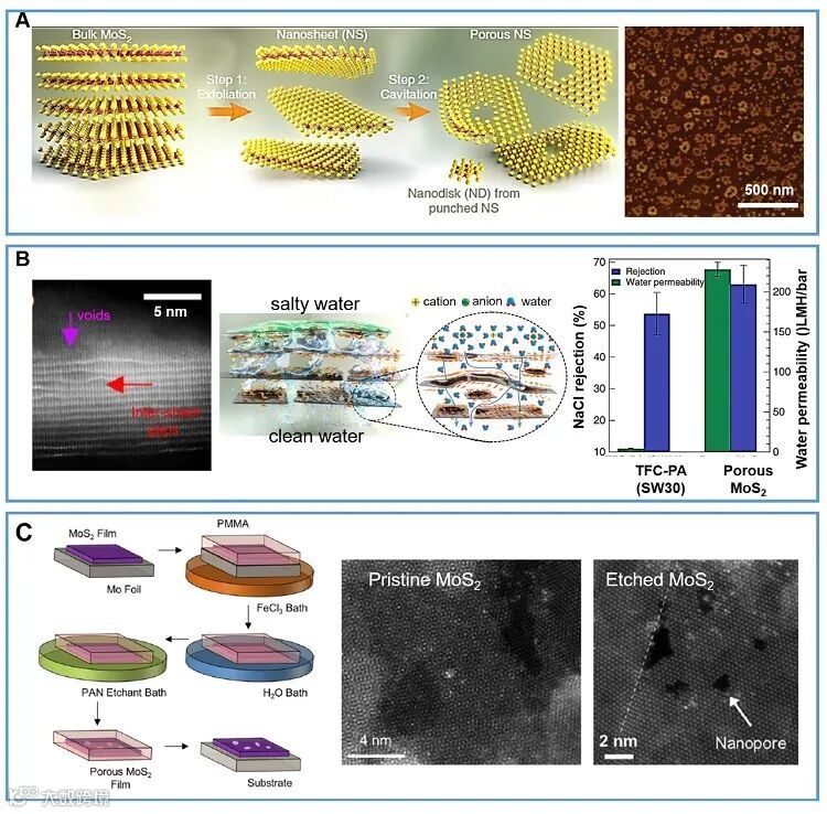 图16. 采用构建孔结构策略改进TMDCs膜的性能。