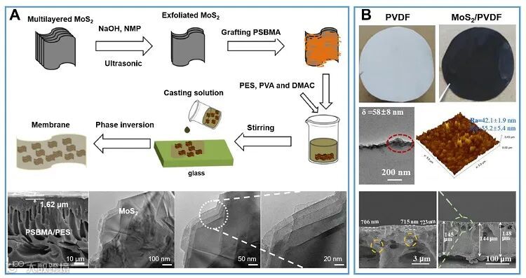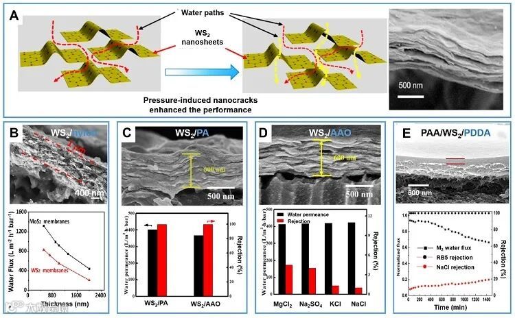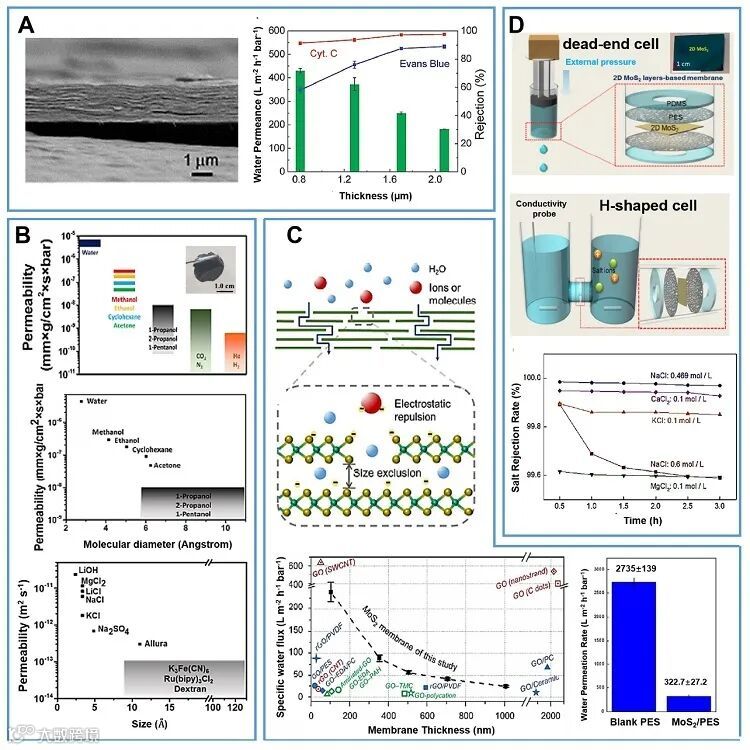 (a)纳米片和膜的调控。在TMDCs膜的制备中,片层厚度和膜厚的调控有待加强,对于膜表面粗糙度影响脱盐性能的研究较少。