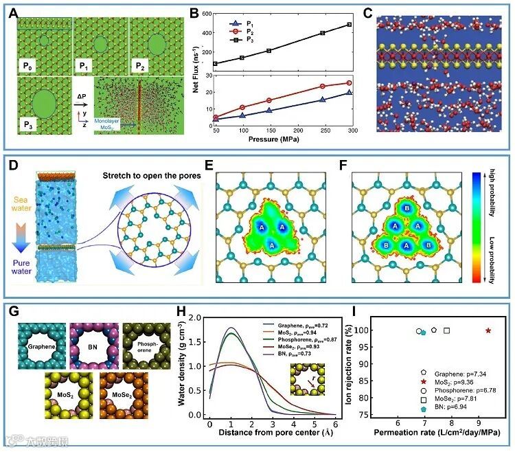 图17. TMDCs膜的孔结构对海水淡化性能影响的理论研究。