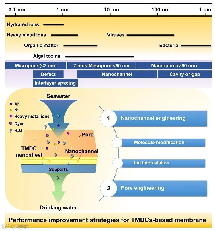 (c)海水淡化机理的解析。在理论研究方面,受限于建模方法和软件技术,计算结果和实验结果间存在较大差距。关于TMDCs膜上孔和纳米通道对污染物的选择性筛分机理仍不清楚。