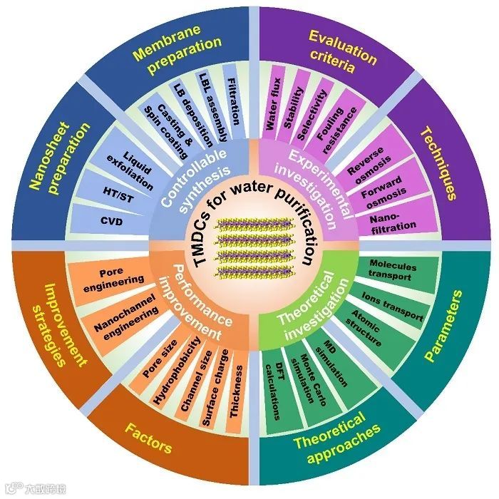 导读:本综述系统地总结了二维TMDCs纳米材料的最新研究进展及其在水净化中的应用,详细阐述了TMDCs功能膜促进水净化的物理和化学过程,同时总结了TMDCs膜在水净化脱盐过程中的理论研究