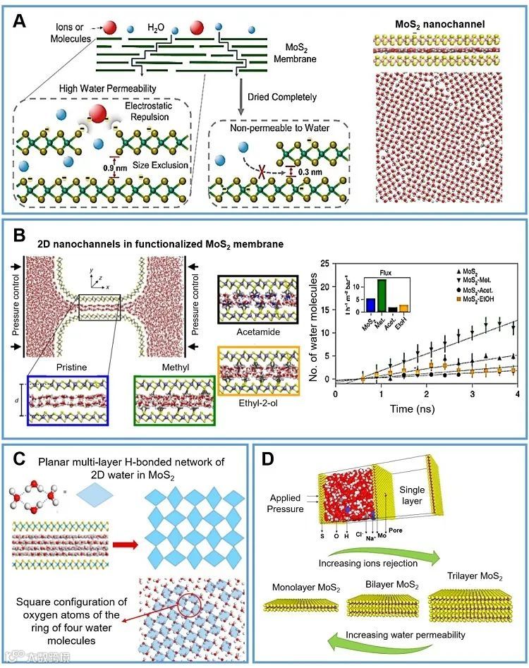 3) TMDCs纳米片具有相对较低的水亲和力,确保了水分子快速通道的形成。