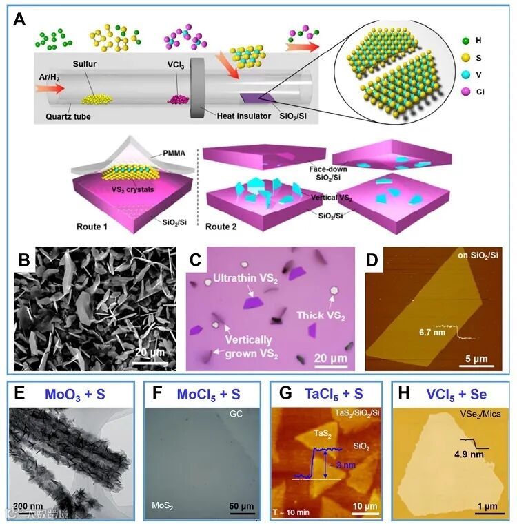 1)TMDCs纳米片的合成方法包括:自上而下的液相剥离法和自下而上的化学气相沉积(CVD)、水热法和溶剂热法等。