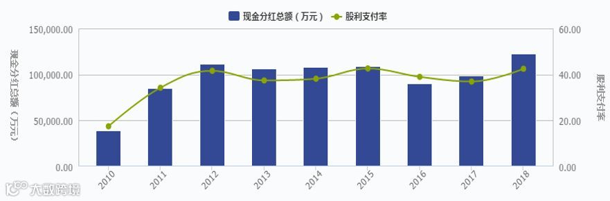 据万得资讯显示,截至5月28日,股份公司2018年度现金分红比例和股息率指标均位列沪深两市3500多家上市公司前10%行列。