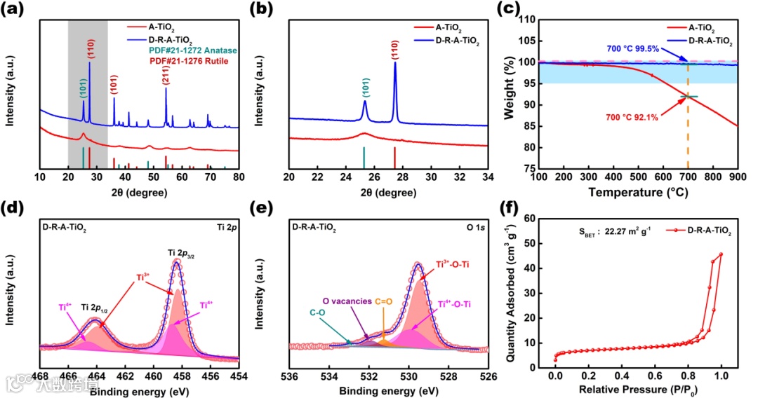 图2.D-R-A-TiO2厚电极的晶体结构等性能表征