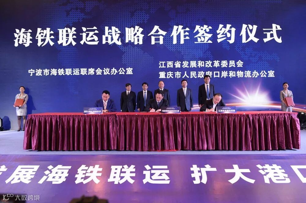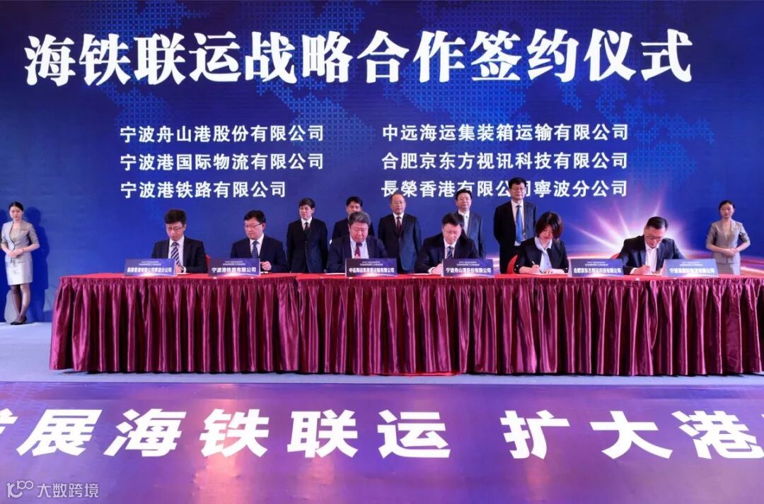 在合作签约仪式上,宁波市海铁联运办分别与江西省发改委、重庆市政府口岸和物流办签订战略合作框架协议;宁波舟山港股份有限公司与中远海运集装箱运输有限公司、宁波港国际物流有限公司与合肥京东方视讯科技有限公司、宁波港铁路有限公司与长荣香港有限公司宁波分公司签订海铁联运战略合作协议。董贵波、陈炳荣、徐强、宫黎明、赵丽建共同见证了相关签约仪式。