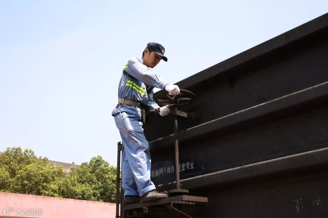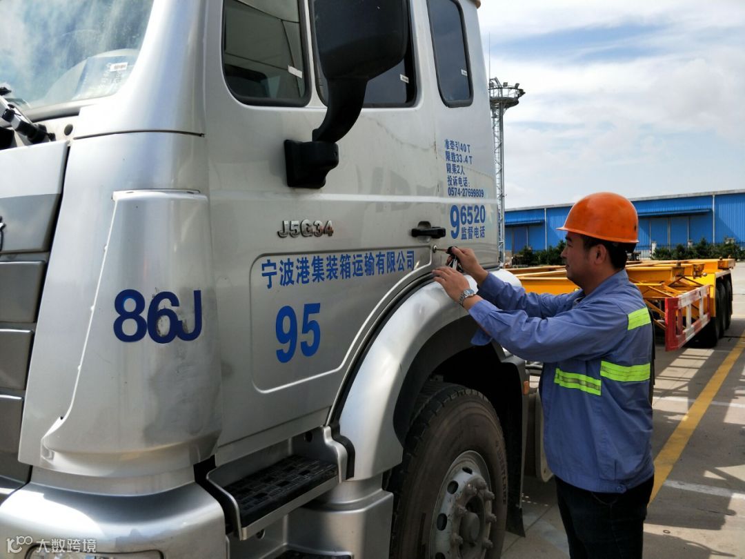 集卡驾驶员锁好车辆门窗,防止车辆进水