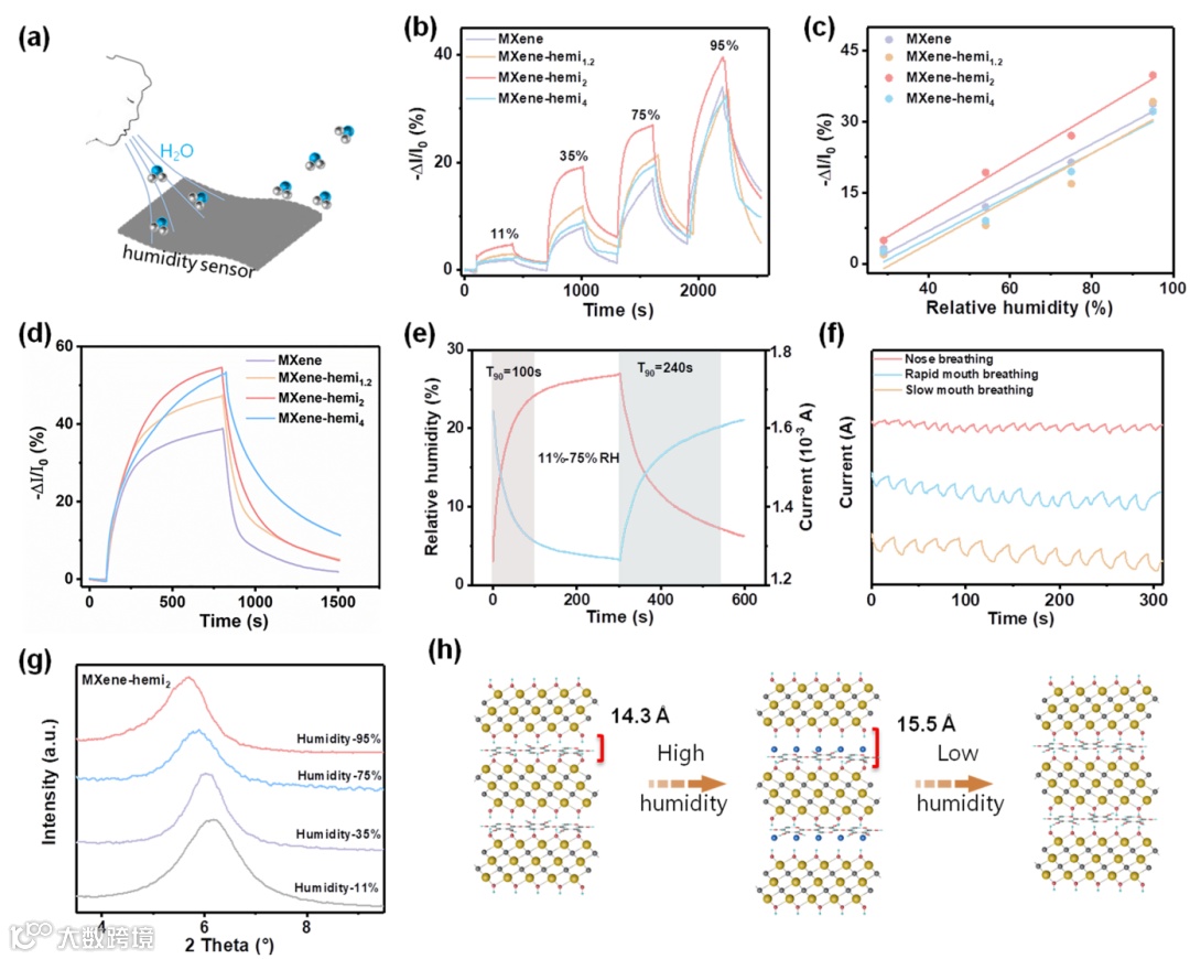 图5. MXene-半纤维素复合膜作为结构电极在湿度传感器中的应用.