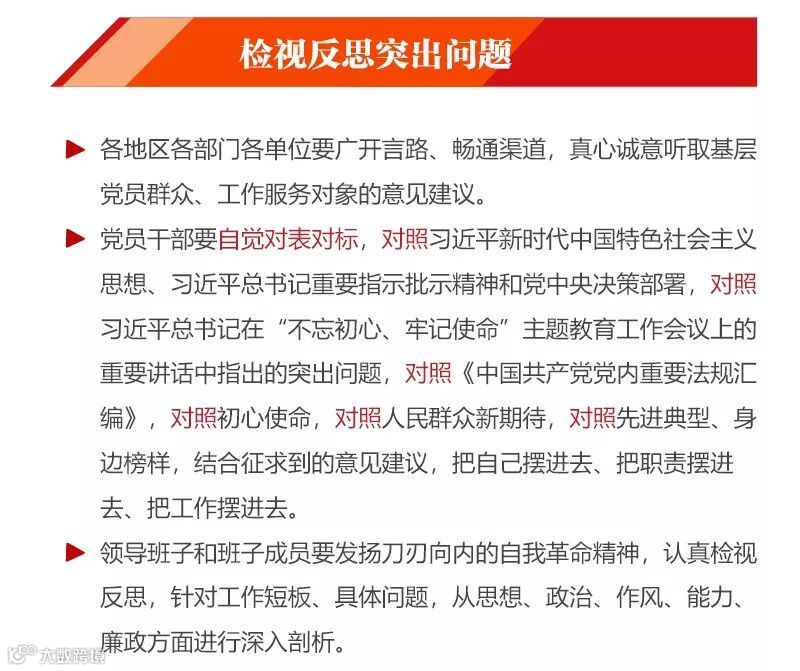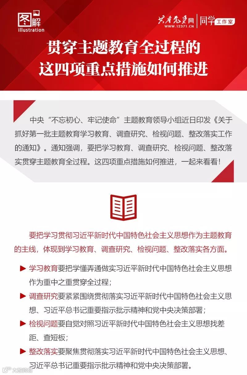 中央“不忘初心、牢记使命”主题教育领导小组近日印发《关于抓好第一批主题教育学习教育、调查研究、检视问题、整改落实工作的通知》。通知强调,要把学习教育、调查研究、检视问题、整改落实贯穿主题教育全过程。这四项重点措施如何推进,一起来看看!