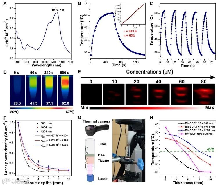 在肝部肿瘤光声成像和光热消融肿瘤方面具有高效能力。在治疗过程中,作者采用1208 nm激光器 (0.8 W c