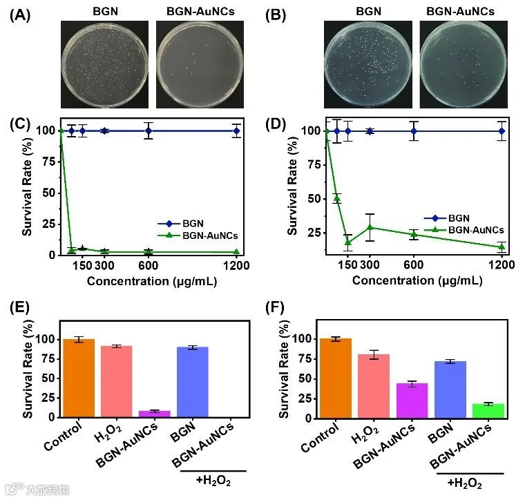 。所提出的超电荷功能化策略,在调控BGN-AuNCs的类酶催化抗菌功效和实现BSA-AuNCs与BGN的超强作用力方面发挥了重要作用。研究发现高度正电化有效提升了BGN-AuNCs的类酶催化性能,从而呈现出比传统离子掺杂型BGN显著增强的抗菌活性和成纤维细胞调控性能,促进感染性创面的快速愈合。同时,基于BSA-AuNCs优异的荧光性能,BGN-AuNCs体系展现出潜在的创面监测功效。相关结果近期发表在国际顶级期刊