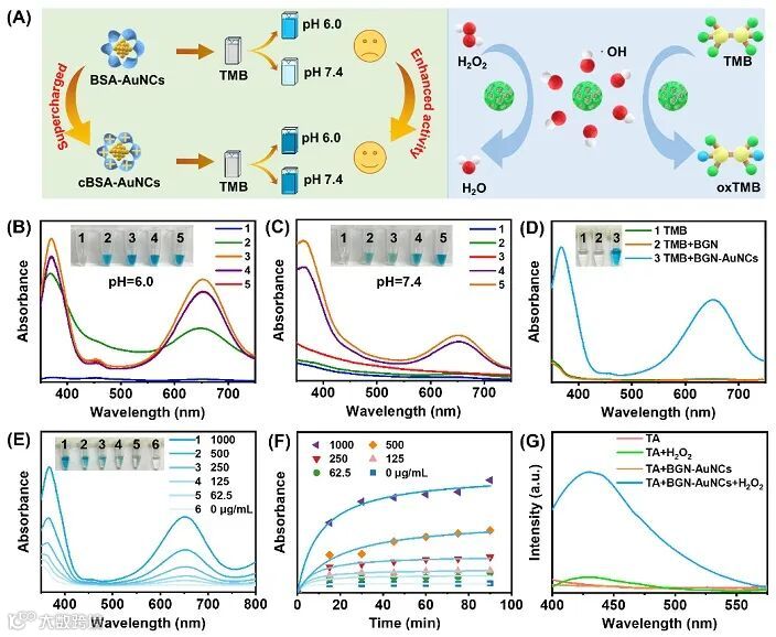 构筑新型金纳米团簇类酶材料(BSA-AuNCs),借助超电荷界面作用实现其对BGN的高效功能化(BGN-AuNCs)