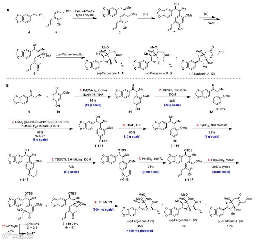 图3. 天然产物Fargesone A的全合成与生物机制研究