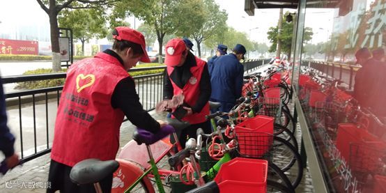 兴港物业党团志愿者携手共建单位——新城消防大队的官兵们开展了以“爱护公共设施、你我携手同行”为主题的“擦亮公共自行车”志愿服务活动。(董莹)