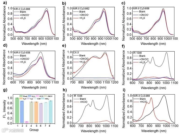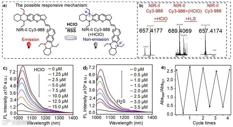 图3. NIR-II探针对HClO和RSS可逆响应性能及可能响应机制研究