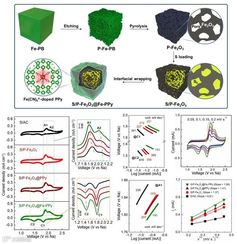 核壳结构催化硫载体,利用载体的连续催化效应调谐钠硫电池体系长链和短链多硫化钠的深度可逆转化,构建了高性能的室温钠硫电池。