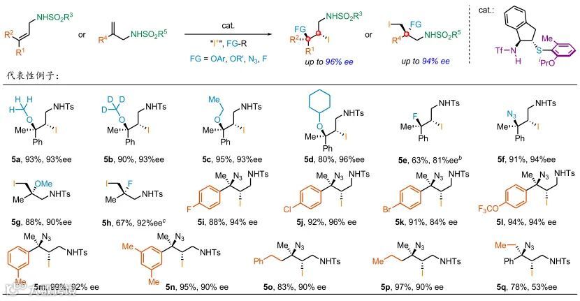 近日,该课题组发现利用他们发展的双官能催化剂可以解决不对称亲电碘化反应的问题,如