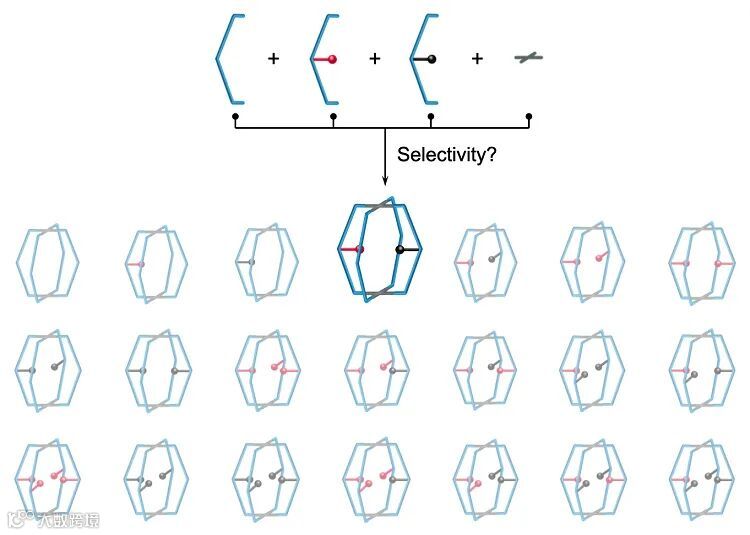 离子按照一定的比例混合时,通常会生成多种自组装体的混合物。绝大多数目前已报道的合成杂配体超分子结构的策略仅能实现两种不同配体分子的可控组装。近日,