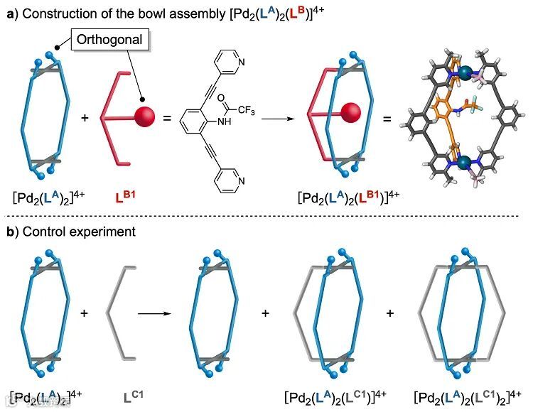 图3. 利用正交的位阻基团选择性地组装碗状配合物