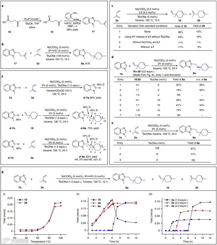 (图5b),这表明杂环的C-H键烷基化并不是先进行的;2)将异戊二烯