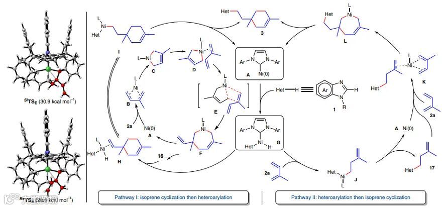 (先杂环C-H键烷基化,再异戊二烯环化)而言,Ni-H物种