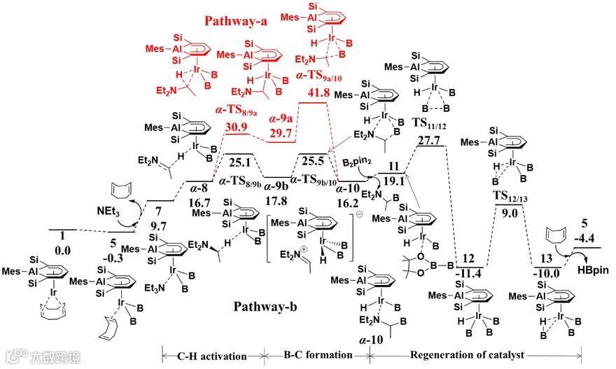 图3. 铱催化三乙胺α C(sp3)−H键硼化的反应势能面。