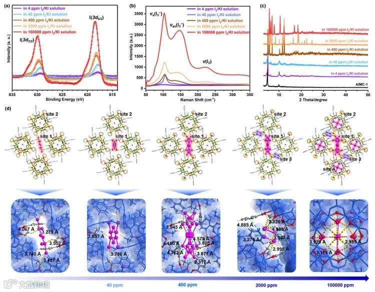 图3. 对碘吸附后的晶体进行的宏观表征和微观机理研究