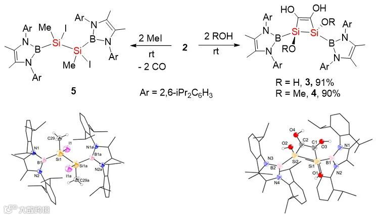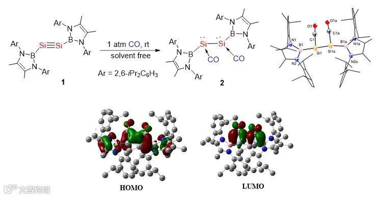 在该工作中,崔春明教授团队首次合成了二硅二羰基配合物,并初步研究了该化合物的结构及反应,发现了氮杂环硼基对低价态硅原子轨道的调控规律,这对发展主族元素化学提供新思路。