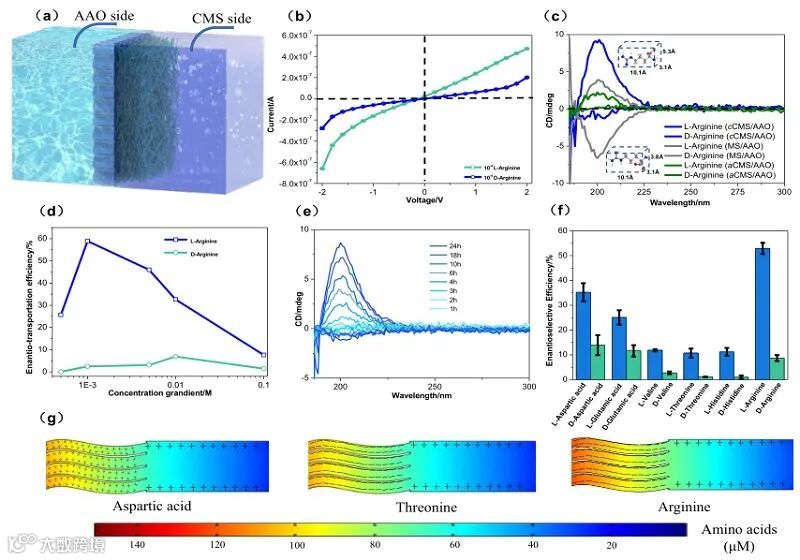 图1. CMS/AAO异质结构薄膜器件的手性筛分性能