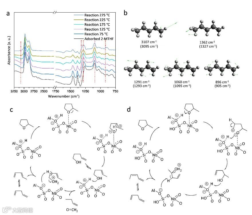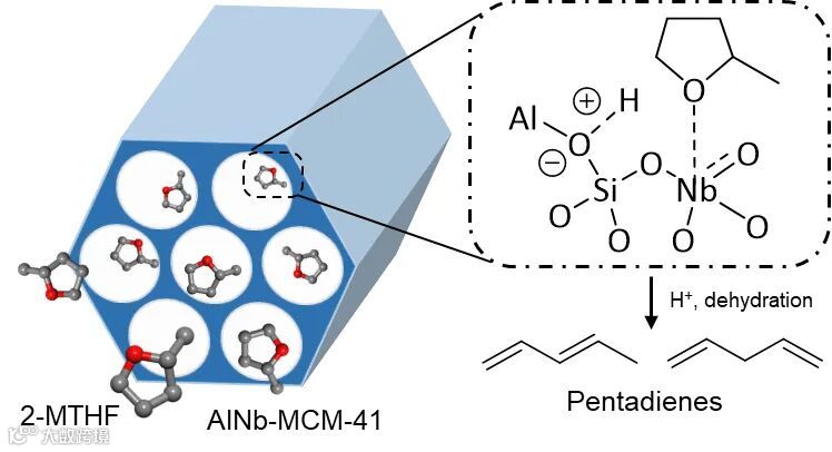 在该工作中,杨四海教授团队首次设计合成了含骨架铌铝双活性位点的介孔分子筛材料,可以应用于高效催化转化生物质衍生物2-甲基四氢呋喃制备戊二烯。该工作为新型介孔材料的设计和开发提供方法和思路。相关工作发表在Angewandte Chemie 上,文章的第一作者是曼彻斯特大学的博士生樊梦天。