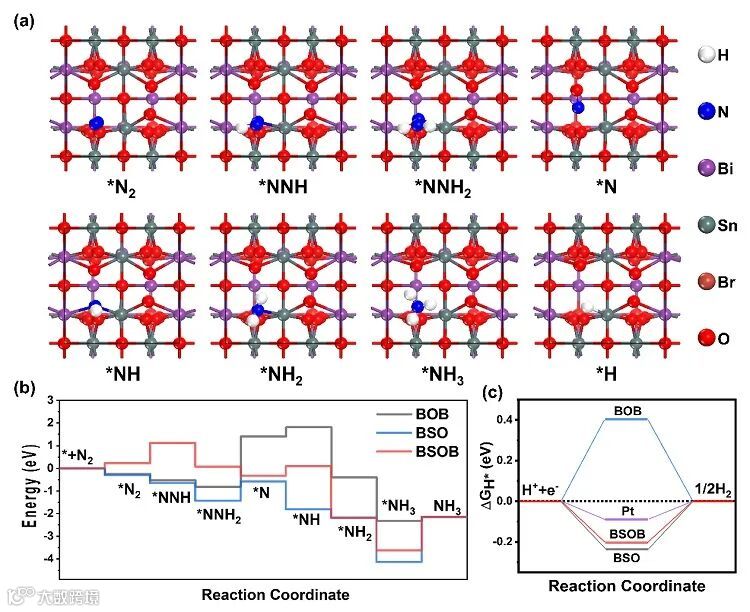 。BSOB可以自发地将中间体裂解为单个吸附的*N,并能有效提供*H。因此,