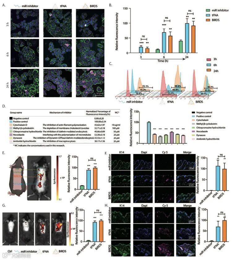 图3. BiDRS出色的细胞摄取能力和组织渗透性。