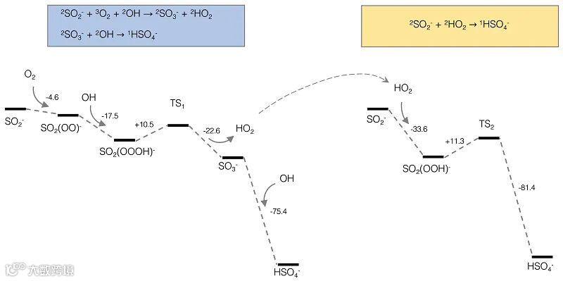 二氧化硫氧化产生硫酸是大气化学中的关键过程,这是因为硫酸是酸雨的主要成分之一,同时由于其具有高吸湿性,也是有效的云凝结核,能够形成云雾从而进一步影响空气质量、人类健康和气候。特别值得注意的是,中国华北地区雾霾成分的很大特点之一在于其含有质量分数极大的硫酸根。尽管已有大量旨在了解硫酸根形成原因的研究,但在雾霾中观测到的硫酸根浓度和现存所有的模拟值加合之间仍然存在巨大差距,这表明雾霾中仍存在有未知的二氧化硫氧化成硫酸根的途径。