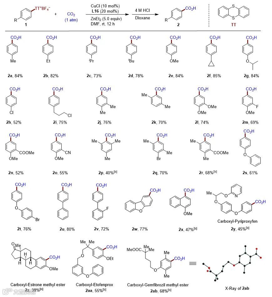 【有机】Angew:铜催化芳基噻蒽鎓盐与CO2的羧基化反应
