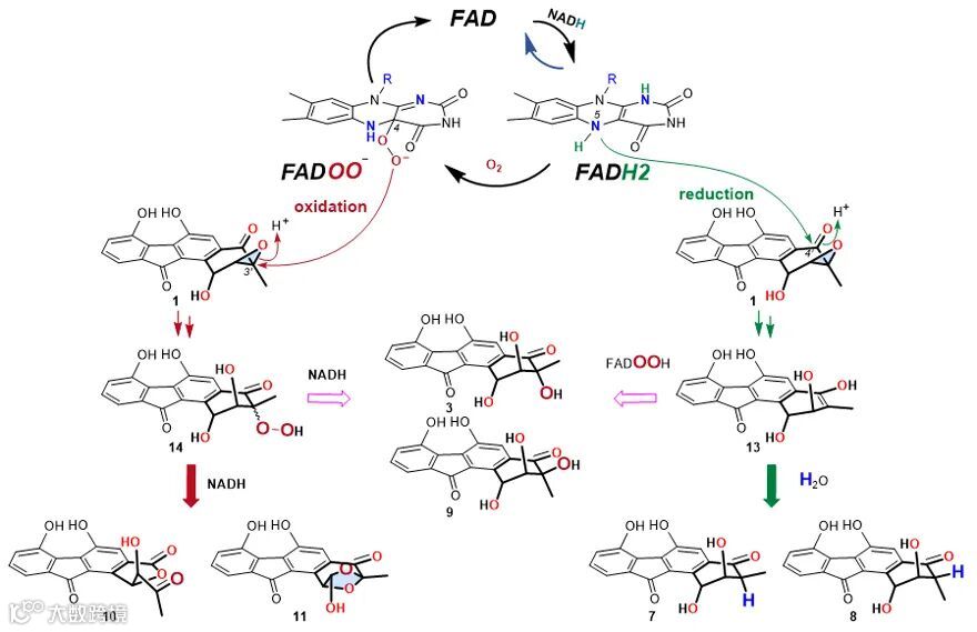 ,后者再通过NADH还原、重排缩环和扩环形成终产物