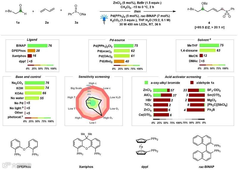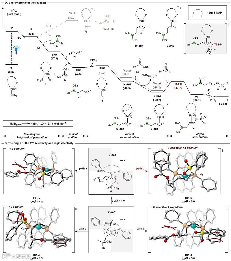 。利用可见光催化和钯催化剂相结合,可以实现一些传统离子型Tsuji-Trost反应无法实现的化学转化,有助于该领域的进一步发展。