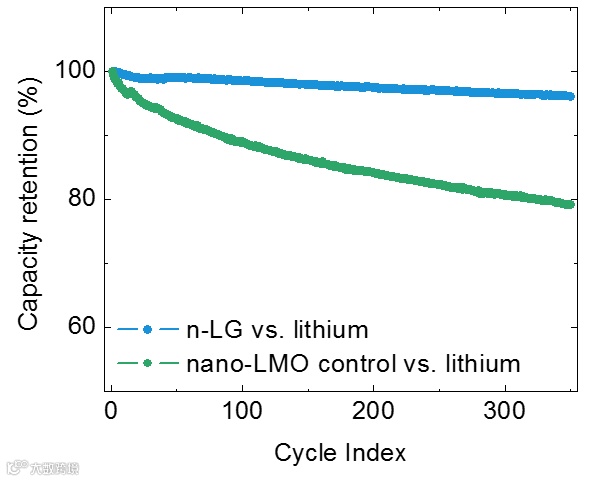 hBN 离子凝胶电解质还显示出与 LNMO 等高压正极材料的相容性,这是由于 hBN 离子凝胶的高化学/电化学稳定性。