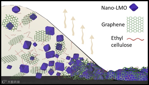 乙基纤维素(同时悬浮少层石墨烯)和电池活性材料(例如 LMO锂锰氧化物)