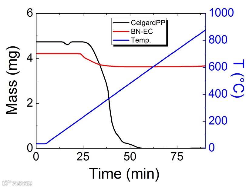 使用可刮涂的 hBN/乙基纤维素墨水和“PVDF 粘合剂”,我们能够制造出可用作锂离子电池隔膜的多孔 hBN 薄膜。与常用的锂离子电池隔膜相比,hBN/EC薄膜不仅可以承受更高的工作温度,而且对大多数电解质的润湿性也更好。