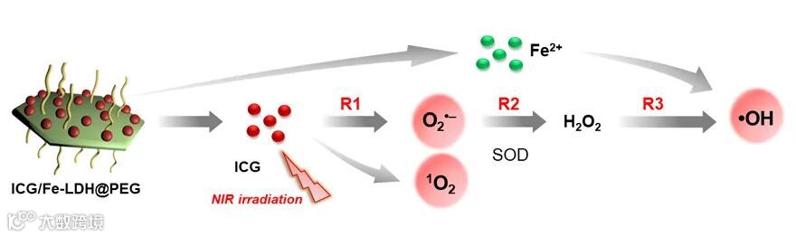 其表面负载的吲哚菁绿(ICG)能在外部近红外光刺激下产生