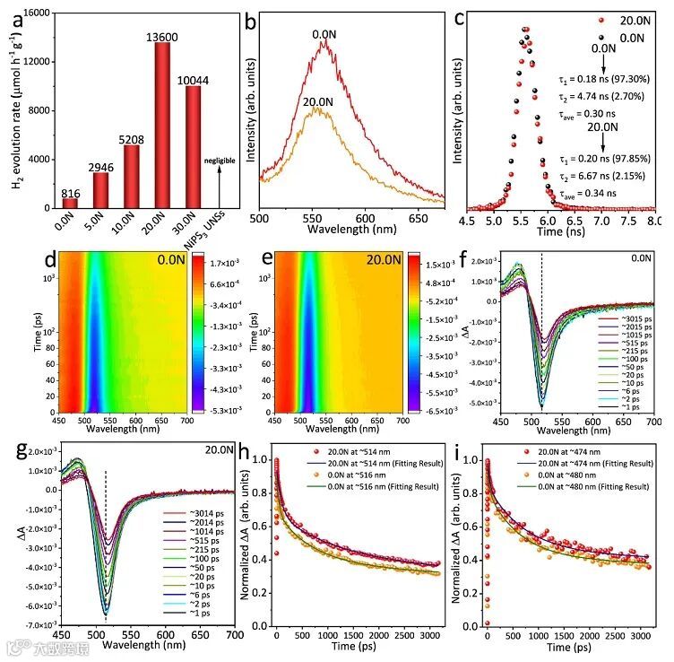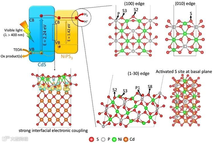 /CdS的性能提高了~1667%。通过DFT理论计算和高级表征,例如球差电镜、瞬态荧光光谱、瞬态表面光伏光谱、超快瞬态吸收和原位X射线光电子能谱,揭示了NiP