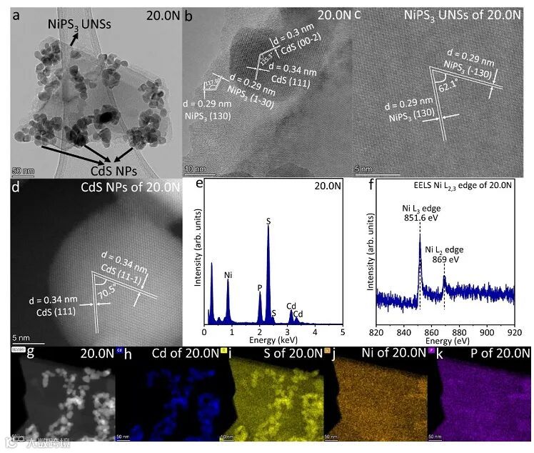 图2. 20.0N 的形貌、微观结构和化学成分。