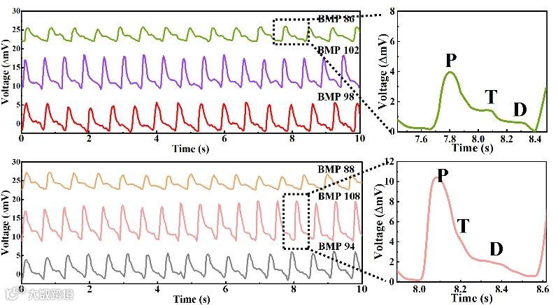 华中科技大学团队开发的一体式电池型压力传感器很好的弥补了上述缺陷。众所周知,电池本身便可以输出电压,同时其输出电压和各种因素有关。他们通过结构设计将锌离子电池设计成为压力传感器。这类传感器能实现高性能、可循环、自供电以及微型化等特点。尤其是电池型传感器优异的性能,赋予其对人体生命体征(脉搏和肢体运动等)的实时检测能力,以及即使在10万次压力刺激下也不会退化的超高稳定性。电池型传感器策略为小型化可穿戴电子设备的未来发展提供了新的解决方案。