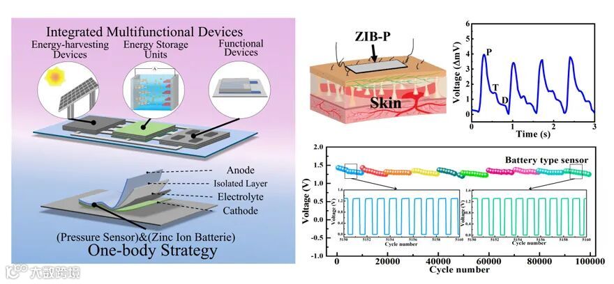 电池是一种存储和释放能量的容器,但是其能否实现除此之外的其他功能呢?近日,华中科技大学的刘逆霜团队通过对锌离子电池进行结构设计,制备了一种一体式的高性能柔性自驱动压力传感器。