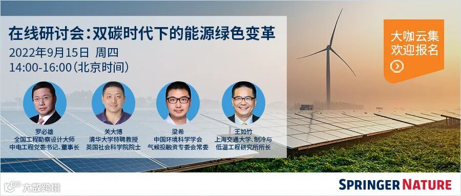 双碳时代背景下,我们将面临各种机遇与挑战。为了助力“双碳”目标,Springer Nature特别推出“双碳时代下的能源绿色变革”在线研讨会,为大家带来双碳时代下核心行业发展动态及未来发展趋势。