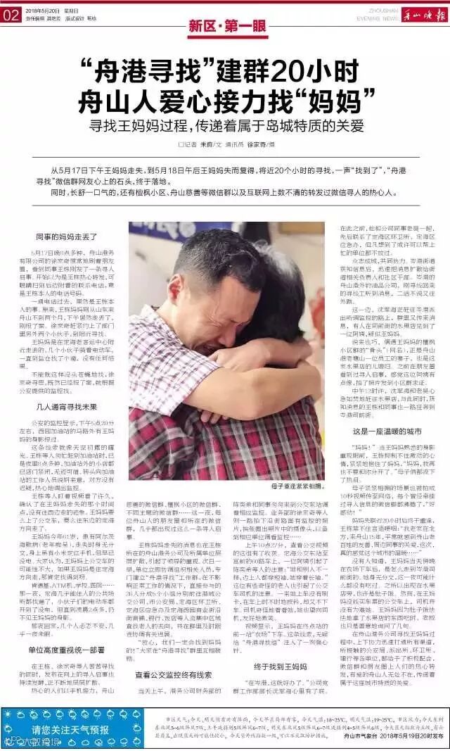 一声“找到了!”终于让“舟港寻找组”的每一位成员心上的石头落地。每个曾经牵挂过寻人信息的微信群在见到母子相拥后的照片都沸腾了:“好感动!”
